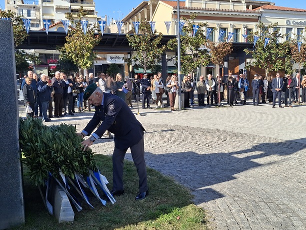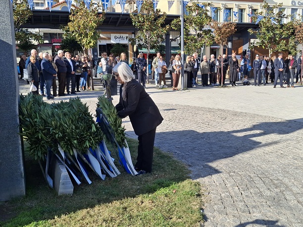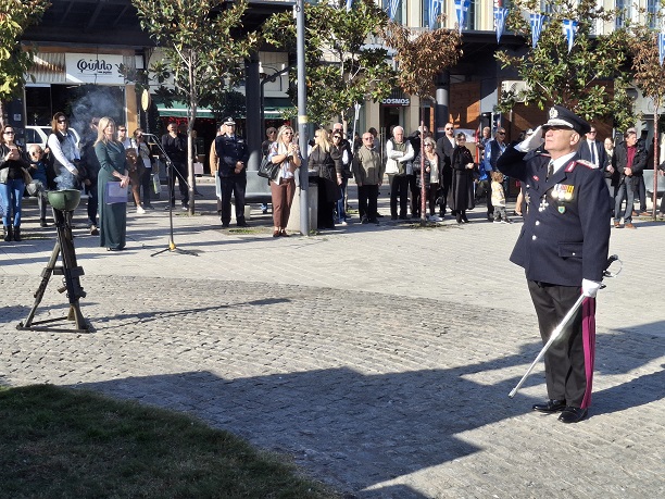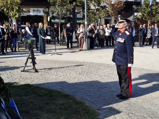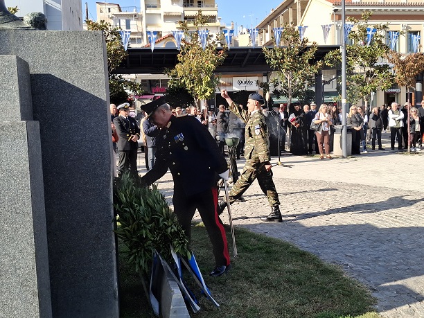 Στη συνέχεια, ακολούθησε πομπή από την Εκκλησία προς την πλατεία Πάρκου όπου και έγινε κατάθεση στεφάνων από τους επίσημους και τους εκπροσώπους των Ενόπλων Δυνάμεων.