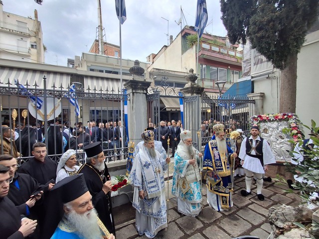 Με κάθε επισημότητα και λαμπρότητα, πραγματοποιήθηκε την Τετάρτη (25/3) ο εορτασμός της μεγάλης διπλής εορτής της 25ης Μαρτίου στη Λαμία, της θρησκευτικής, του Ευαγγελισμού της Θεοτόκου και της Εθνικής μας Εορτής, τιμώντας την Ελληνική Επανάσταση του 1821.