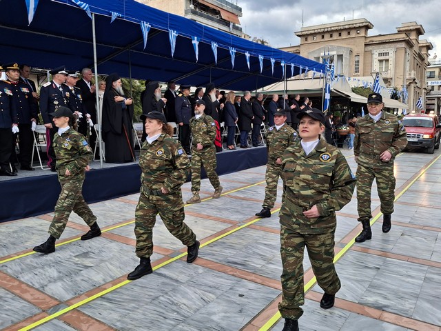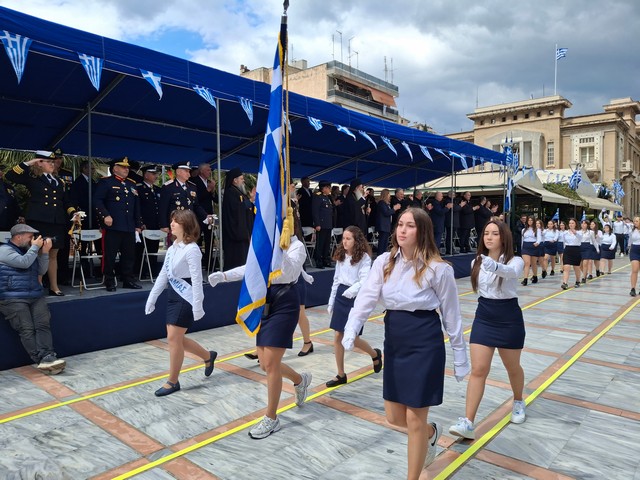 Ακολούθησε η στρατιωτική, μαθητική και πολιτική παρέλαση, μέσα σε κλίμα υπερηφάνειας, με τους συμμετέχοντες να δίνουν τον καλύτερό τους εαυτό για να τιμήσουν την πολύ σημαντική αυτή μέρα του Έθνους μας και τον κόσμο που κατέκλυσε το κέντρο, να τους χειροκροτεί και να τους επευφημεί.