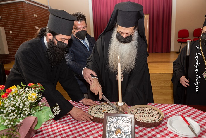 Μετά από πρόσκληση του κ. Δημάρχου, ο Ποιμενάρχης μας κ. Συμεών μετέβη ευθύς στην αίθουσα τελετών του Δήμου και ευλόγησε την προγραμματισμένη για εκείνη την ημέρα βασιλόπιτα του Δήμου, παρουσία των Αντιδημάρχων, των μελών του Δημοτικού Συμβουλίου και των εργαζομένων και ευχήθηκε η νέα χρονιά να φέρει σε όλους υγεία, ευλογία, αισιοδοξία και την από Θεού δύναμη στο έργο του Δήμου .