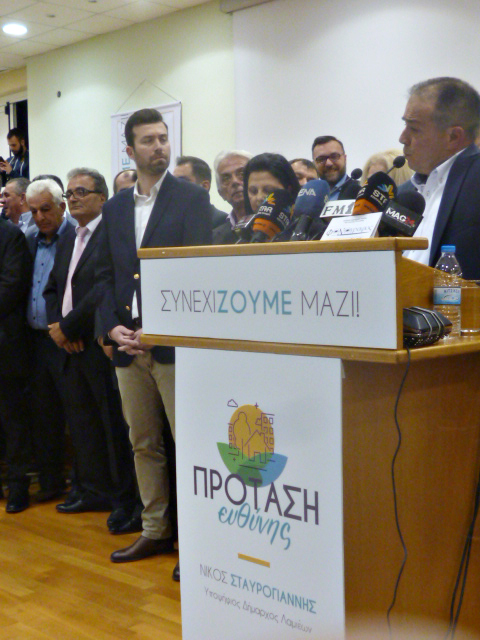 Mήνυμα ισχυρής στήριξης και αποδοχής του έργου του Δημάρχου Λαμιέων Νίκου Σταυρογιάννη και της μεγάλης προσπάθειας που εγινε τα προηγούμενα 4,5 χρόνια απο την σημερινή Δημοτική Αρχή για το νοικοκύρεμα του Δήμου , εστειλε η μαζική παρουσία του κόσμου στην αποψινή συγκέντρωση του συνδυασμού ''Πρόταση Ευθύνης''.