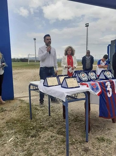 Στο στάδιο του Δομοκού τελέστηκε αγιασμός και αποκαλυπτήρια της επιγραφής με το όνομα του.