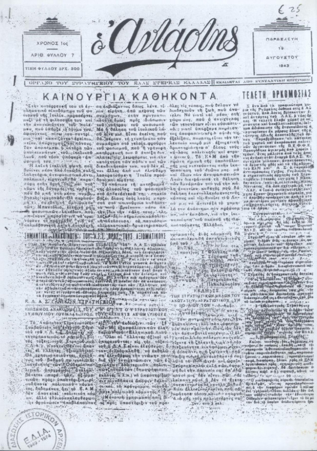 (Αντιστασιακές εφημερίδες που εγγράφησαν με μελάνη και αίμα, βρίσκονται στα «Γενικά Αρχεία του Κράτους - Αρχεία Νομού Φθιώτιδος»)