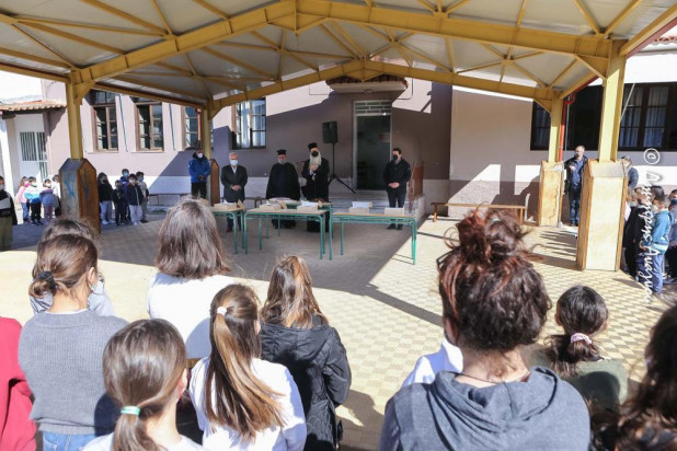 Ο κ. Συμεών επισκέφθηκε το 5ο Δημοτικό Σχολείο Λαμίας, όπου έγινε δεκτός με πολύ ενθουσιασμό και σεβασμό από τον Διευθυντή κ. Γεώργιο Μπαχλαβά, τους δασκάλους και τους μαθητές και τις μαθήτριες, οι οποίοι και κατέθεσαν τις ευχαριστίες τους στον Σεβασμιώτατο χαρακτηρίζοντας την επίσκεψη του ευλογημένη και ιστορική, καθότι πρώτη φορά οι οικείος Μητροπολίτης επισκέπτεται το σχολείο.