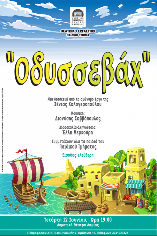 Το Παιδικό Τμήμα του Θεατρικού Εργαστηρίου του ΔΗ.ΠΕ.ΘΕ. Ρούμελης, ολοκληρώνοντας τον κύκλο των μαθημάτων του για την περίοδο 2018-2019, παρουσιάζει την παράσταση «ΟΔΥΣΣΕΒΑΧ» της Ξένιας Καλογεροπούλου την Τετάρτη 12 Ιουνίου, στο Δημοτικό Θέατρο Λαμίας στις 19:00.