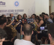 Αντιλαμβάνομαι απολύτως τα αισθήματα των ανθρώπων ανεξαρτήτως εθνότητας, αλλά οφείλω επίσης να πω ότι η βία δε συνιστά ποτέ τη λύση στα προβλήματα. Η ακροδεξιά και οι φασιστικές πρακτικές δεν μπορούν να έχουν θέση εντός του ναού της δημοκρατίας και μάλιστα, με αφορμή τη Γενική Συνέλευση ενός οργανισμού, όπως η Διακοινοβουλευτική Συνέλευση της Ορθοδοξίας, που προάγει την ειρήνη, την αδελφοσύνη και τη συνεργασία μεταξύ των λαών».