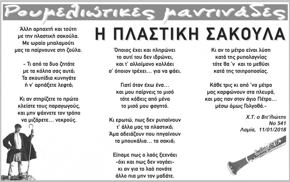 Ρουμελιώτικες μαντινάδες "Η ΠΛΑΣΤΙΚΗ ΣΑΚΟΥΛΑ"