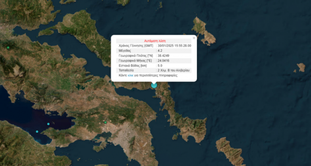Σεισμός 4,4 Ρίχτερ σημειώθηκε στο Αλιβέρι Ευβοίας ενώ έγινε έντονα αισθητός και στην Αθήνα.