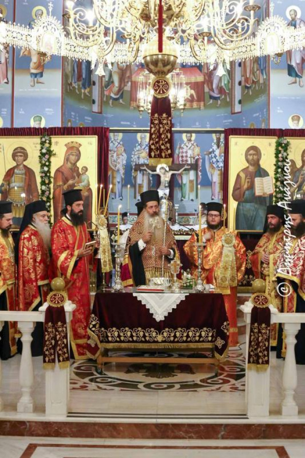 «Η ανέγερση, η αποπεράτωση, ο εξωραϊσμός και η παράδοση ενός εκκλησιαστικού έργου, όπως είναι ένας Ιερός Ναός είναι υπόθεση πολλών, δεν είναι υπόθεση ενός, ούτε λίγων. Είναι υπόθεση όλων. Είναι υπόθεση όλης της ενορίας και όλων των ενοριτών και όλων των συνεργατών και σήμερα πρώτα από όλα δεν αγιάζουμε τις πέτρες, οι οποίες θα κοσμήσουν και θα στολίσουν τον Ιερό Ναό και θα τον στηρίξουν και θα τον μονώσουν, αλλά πρωτίστως αγιάζουμε τα πρόσωπα, τα πρόσωπα τα ευλογημένα, τα οποία αγαπούν τον Ναό, γνωρίζουν ότι ο Ναός δεν είναι ένα κτίριο, αλλά είναι ένας τρόπος ζωής και αυτό είναι το σημαντικότερο ,το οποίο ίσως είναι ακατανόητο για κάποιους άλλους ανθρώπους, που είναι μακριά από την πίστη και από τη ζωή αλλά είναι πάρα πολύ κατανοητό για όλους εμάς.