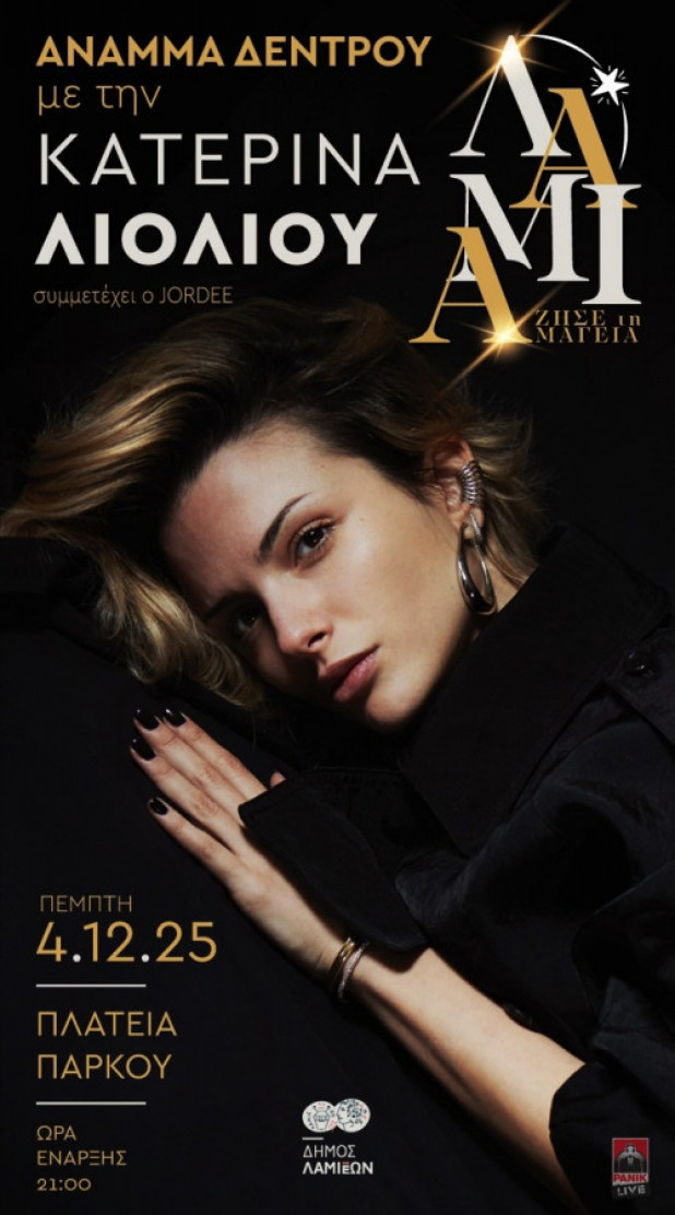 Η πόλη μας θα γεμίσει λάμψη, χαμόγελα και μουσική, με τη φωταγώγηση του Χριστουγεννιάτικου δέντρου υπό τους ήχους της Δημοτικής Φιλαρμονικής Λαμίας, ενώ η βραδιά θα κορυφωθεί με τη μοναδική συναυλία της αγαπημένης Κατερίνας Λιόλιου, που θα μας διασκεδάσει με τις μεγάλες επιτυχίες της. Μαζί της, συμμετέχει ο Jordee.