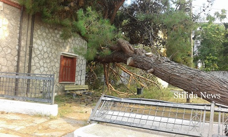 Ένα μεγάλο πεύκο έπεσε σήμερα το πρωί στην περιοχή του Σιδηροδρομικού Σταθμού της Στυλίδας .