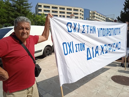 Συγκέντρωση διαμαρτυρίας ενάντια στον υποχρεωτικό εμβολιασμό και τον διαχωρισμό έξω από το Γενικό Νοσοκομείο Λαμίας