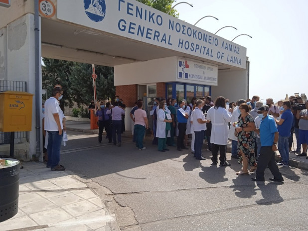 Συγκέντρωση διαμαρτυρίας πραγματοποίησαν σήμερα οι υγειονομικοί του Νοσοκομείου της Λαμίας κατά της υποχρεωτικότητας των εμβολιασμών, συμμετέχοντας στην πανελλαδική κινητοποίηση της ΠΟΕΔΗΝ. Οι υγειονομικοί αντιδρούν στην υποχρεωτικότητα εμβολιασμού κατά του κορoνοϊού, η οποία οδηγεί τους ανεμβολίαστους σε αναστολή εργασίας από την 1η Σεπτεμβρίου.