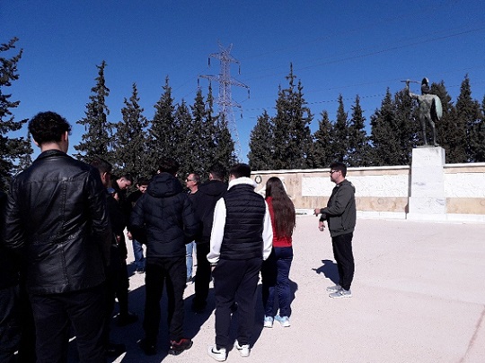 Η εκπαιδευτική μας δράση συνεχίστηκε μπροστά στο εντυπωσιακό μνημείο της Μάχης των Θερμοπυλών, με το ανυπέρβλητο άγαλμα του Λεωνίδα, αλλά και στο αφιερωματικό μνημείο για τους 700 Θεσπιείς, όπου οι υπεύθυνοι του Κ.Ε.ΠΕ.Α. Στυλίδας-Υπάτης μάς ανέλυσαν με άκρως ενδιαφέρουσες λεπτομέρειες τη Μάχη, αλλά και μάς παρουσίασαν στοιχεία αρχαιολογικού ενδιαφέροντος για τα μνημεία.