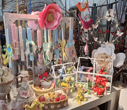 Για μία ακόμη φορά, οι γυναίκες του συλλόγου, με πολύ μεράκι και πολλή προσωπική δουλειά, έχουν κατασκευάσει μοναδικές δημιουργίες, τόσο πασχαλινές λαμπάδες όσο και άλλες εξαιρετικές ιδέες διακόσμησης, που σίγουρα θα αφήσουν απόλυτα ικανοποιημένους τους επισκέπτες της φιλανθρωπικής αγοράς.