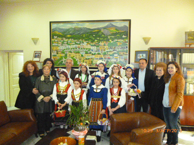 Το Δημαρχείο γέμισε παιδικές φωνές ενώ ο κ. Σταυρογιάννης αντάλλαξε ευχές με τα κορίτσια του Λυκείου και τους συνοδούς τους.