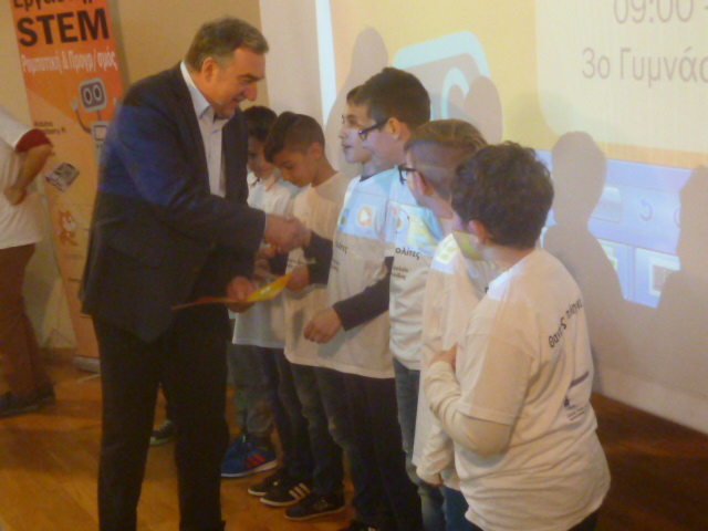 Στην κατάμεστη αίθουσα του 3ου Γυμνασίου Λαμίας εγινε σήμερα η απονομή των βραβείων των σχολείων που συμμετείχαν στον 4ο Περιφερειακό Διαγωνισμό Εκπαιδευτικής Ρομποτικής . Τον διαγωνισμό που απευθύνονταν σε μαθητές Δημοτικού , Γυμνασίου και Λυκείου , συνδιοργάνωσαν η Επιστημονική Ένωση Εκπαιδευτικής και Τεχνολογικής Καινοτομίας και Συνεργασίας «Εργαστήρι STEM» και η Περιφέρεια Στερεάς Ελλάδας .