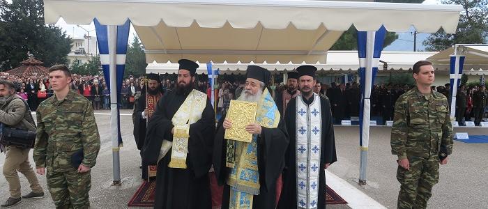 Τελετή Ορκωμοσίας των νεοσυλλέκτων οπλιτών της 2016 B΄ ΕΣΣΟ πραγματοποιήθηκε σήμερα το πρωί στο Κέντρο Εκπαιδεύσεως Υλικού Πολέμου στη Λαμία χοροστατούντος του Μητροπολίτη Φθιώτιδας κ. Νικολάου .
