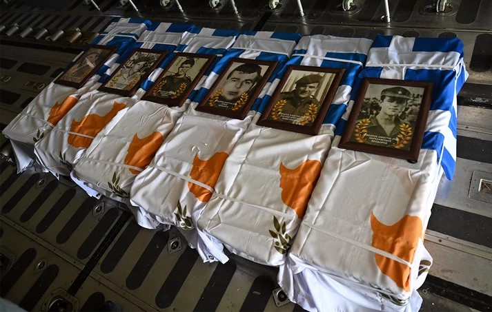Συγκινητικές στιγμές εκτυλίχθηκαν στην Αεροπορική Βάση Ελευσίνας κατά τον επαναπατρισμό των λειψάνων έξι πεσόντων οπλιτών κατά την τουρκική εισβολή στην Κύπρο, το 1974.