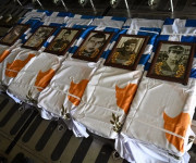 Η εκδήλωση ξεκίνησε μόλις μπροστά από το υπόστεγο της VIP πτέρυγας έφτασε το γιγαντιαίο C-130 της Πολεμικής Αεροπορίας που μετέφερε τα λείψανα που ταυτοποιήθηκαν. Παρά την έντονη ζέστη και ηλιοφάνεια, οι συγγενείς -μαζί με το άγημα και τη στρατιωτική ηγεσία- περίμεναν ευλαβικά να εξέλθουν του αεροσκάφους τα λείψανα.
