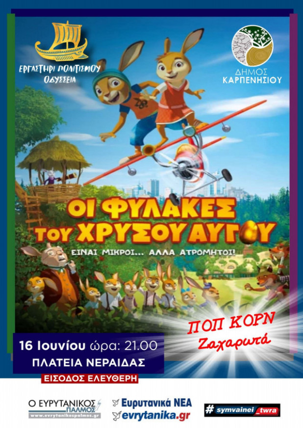 Τη Δευτέρα (16/6) στις 21:00 το βράδυ, στην πλατεία Νεράιδας της ευρυτανικής πρωτεύουσας, θα προβληθεί η παιδική ταινία «Οι Φύλακες Του Χρυσού Αυγού».