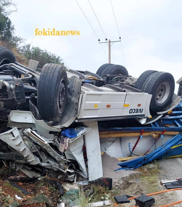 Τροχαίο με νταλίκα λίγο έξω από το Γαλαξίδι