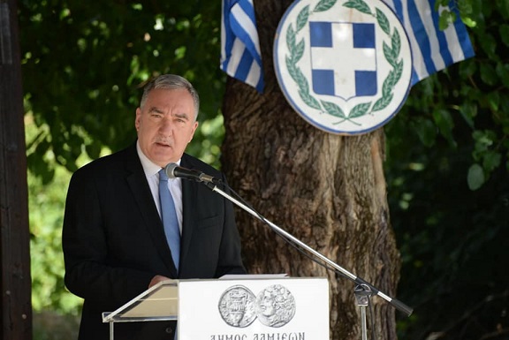 Σ΄ αυτόν εδώ τον τόπο που ερχόμαστε ταπεινοί προσκυνητές, ερχόμαστε πρώτα απ’ όλα για να τιμήσουμε εκείνες και εκείνους που έπεσαν θύματα της βαρβαρότητας και εκδικητικότητας του κατακτητή, που, αντί να χτυπηθεί στα πεδία με τους μαχητές, προτίμησε να εξοντώσει αδιακρίτως γυναικόπαιδα και να κάψει σπίτια και εκκλησιές και να εκτελέσει άοπλους Έλληνες.