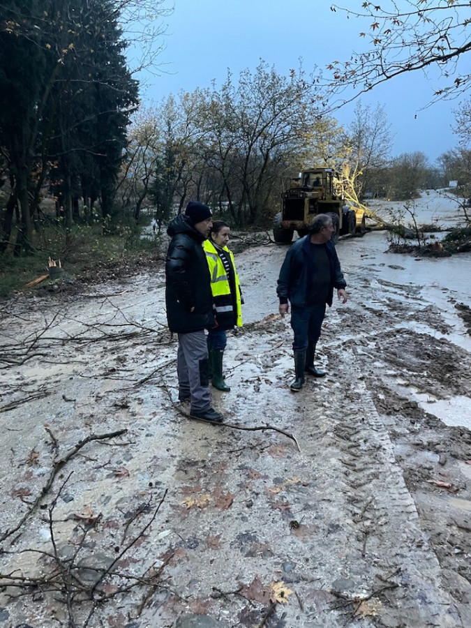 • Στην αγροτική οδό της Τ.Κ. Παλιουρίου προς την Τ.Κ. Καρυάς (Γέφυρα Παλιούρι), λόγω υπερχείλισης του χειμάρρου στο χωμάτινο οδόστρωμα.