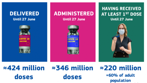 Μέχρι τις 27 Ιουνίου, θα έχουν παραδοθεί 424 εκ. δόσεις εμβολίων στην ΕΕ.